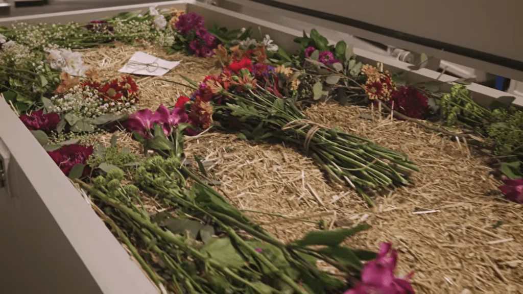 Oxygen flows through the vessel which stimulates microbes in the body. These microbes rapidly transform the body into soil in just 30 days.
